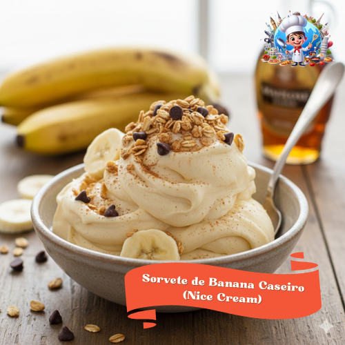 Dica de Chef: Você pode transformar o sabor base adicionando uma colher de cacau em pó durante o processo para fazer um Nice Cream de chocolate, ou morangos congelados para uma versão de frutas vermelhas.